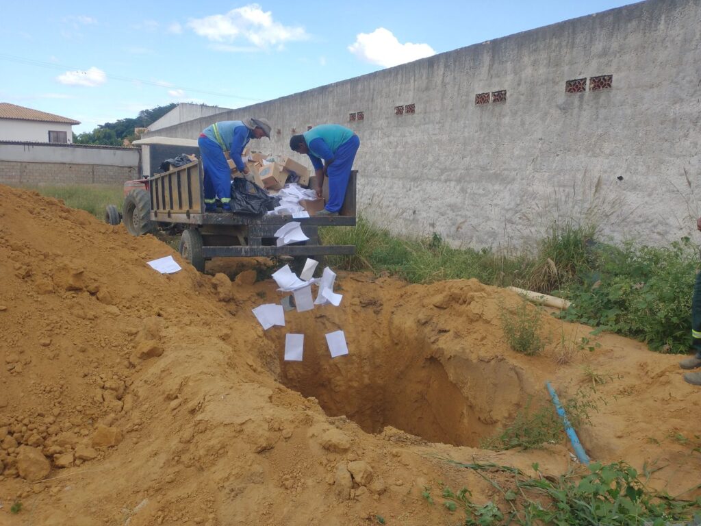 O aterramento pode ser uma alternativa sustentável, dependendo das condições do solo e do objetivo do descarte. Nesse caso, como se trata de pouco mais de 15 metros cúbicos, o papel não formará barreiras de impedimento de passagem de água e ar. Para garantir maior biodegradabilidade e ajudar na aceleração da decomposição, foram retirados todos os objetos metálicos e plásticos de cada conjunto de folhas, tais como invólucros, borrachas, pastas plastificadas, clipes de metal ou similares.