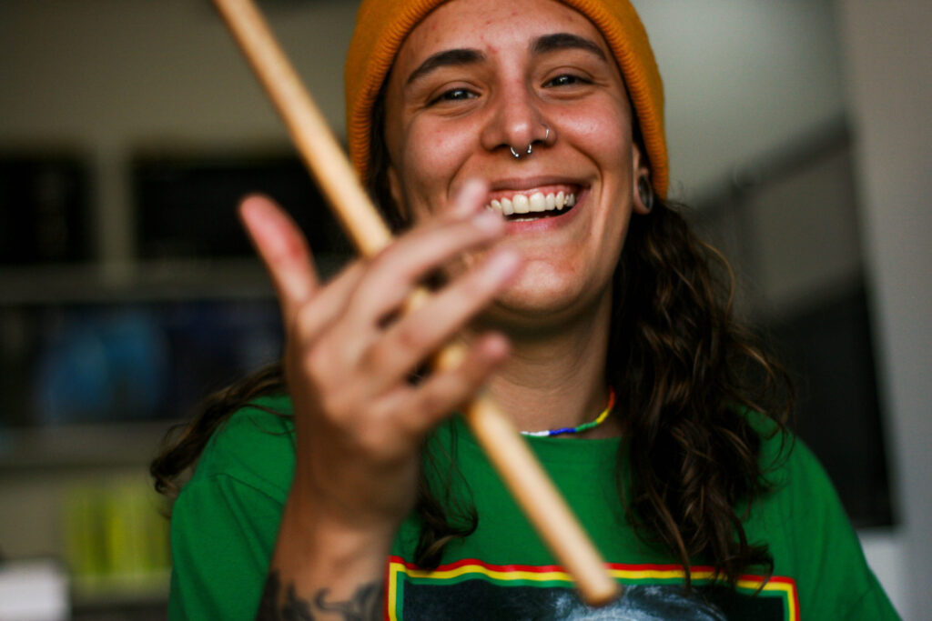 Foi Rubão quem apresentou Pipa ao seu primeiro instrumento, o cavaquinho. Quando ainda era criança, ela aprendeu com o pai a tocar a canção “Atrás do Trio Elétrico”, de Caetano Veloso. Essa é uma de suas primeiras memórias com a música. “Eu era muito novinha e achava aquilo fantástico. Para mim, era como se fosse um brinquedo”, conta. Anos depois, a brincadeira se tornaria uma profissão.