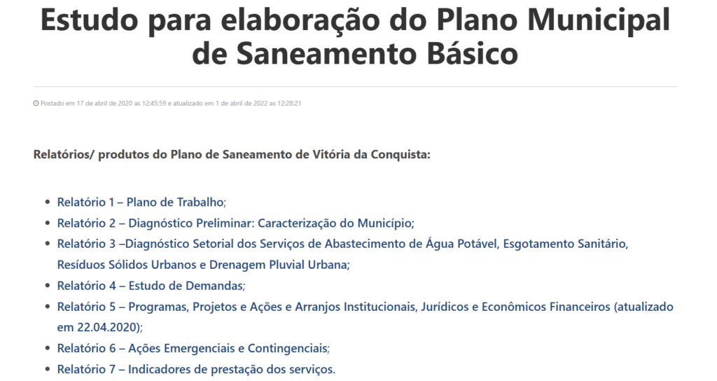 Nossa reportagem enviou à Prefeitura Municipal de Vitória da Conquista (PMVC), no dia 25 de outubro, questionamentos sobre a elaboração e não existência de um Plano Municipal de Saneamento Básico no município, mas não obtivemos resposta até a publicação desta reportagem.